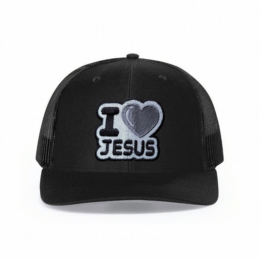 I Love Jesus Trucker Hat Black On Black Adjustable Faith Snapback Jesus Apparel
